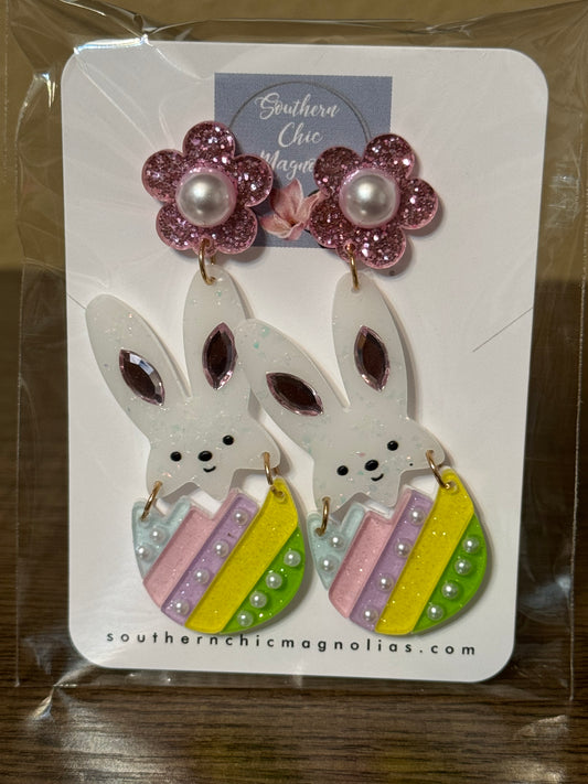 2-TIER FLORAL POST GLITTER & PEARL EASTER EARRINGS