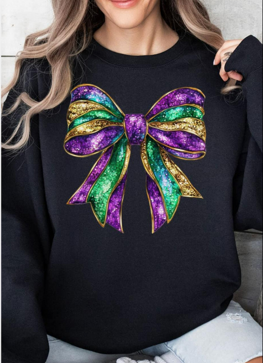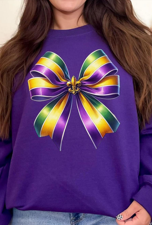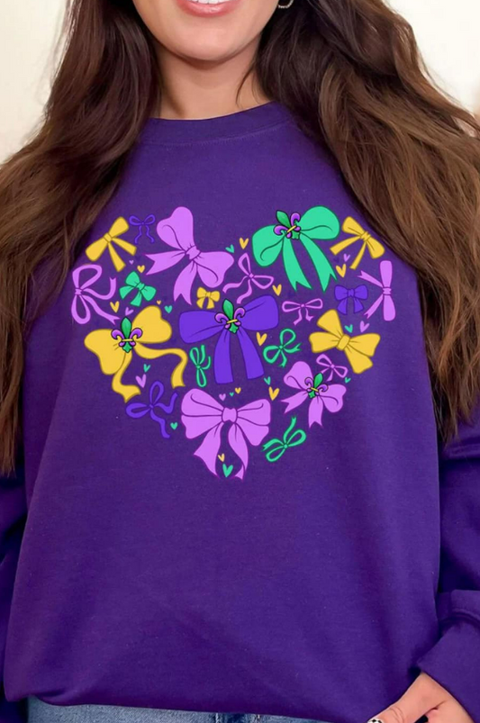 Pre-Order Glitzy Mardi Gras Bow Heavy-weight Crew Sweatshirt
