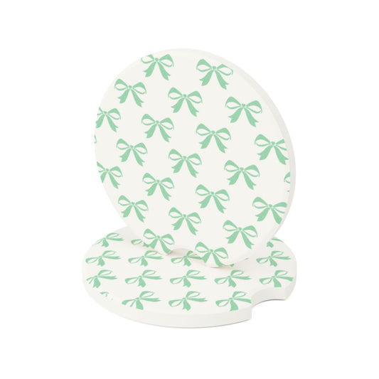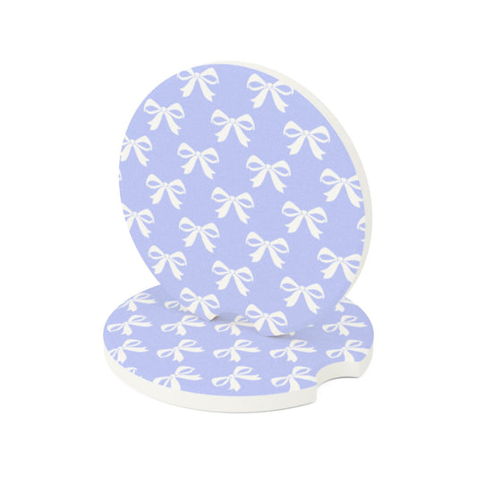 Soapstone Car Coaster Girlie Bow Blue Solid