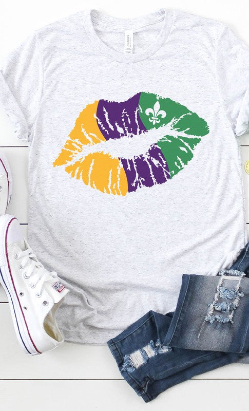 Mardi Gras Wine Glass Crew Neck Graphic Tee