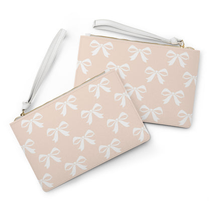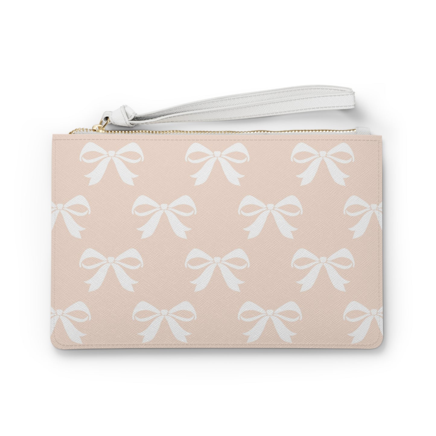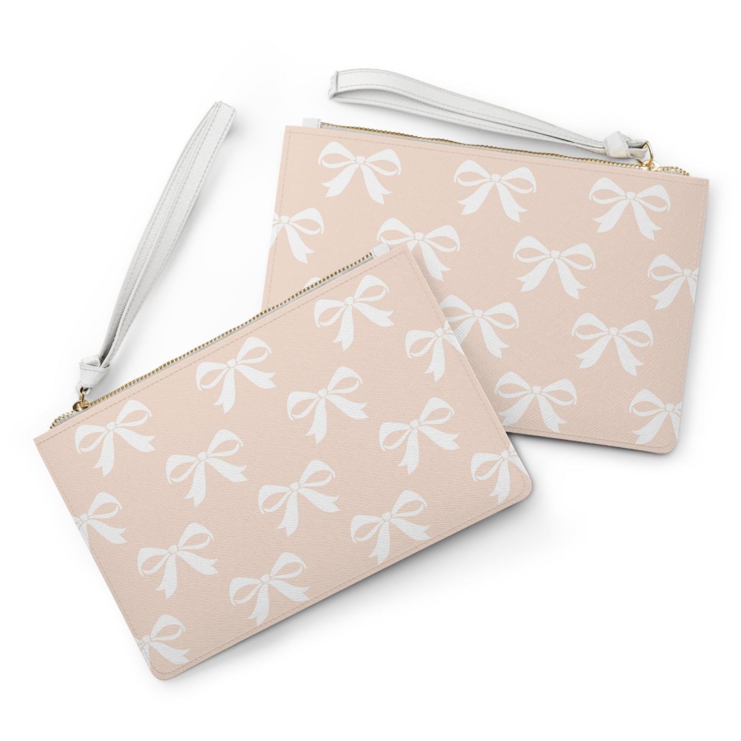 This elegant clutch bag features a stylish girlie bow design in a beautiful Light Pink Solid color. Made with high-quality materials, designed with a loop handle to quickly free your hands, it offers durability and functionality while adding a touch of sophistication to any outfit. It features a zip fastening and a fully lined internal pocket. Perfect for a night out or special occasion, this bag is sure to impress with its chic and versatile style.