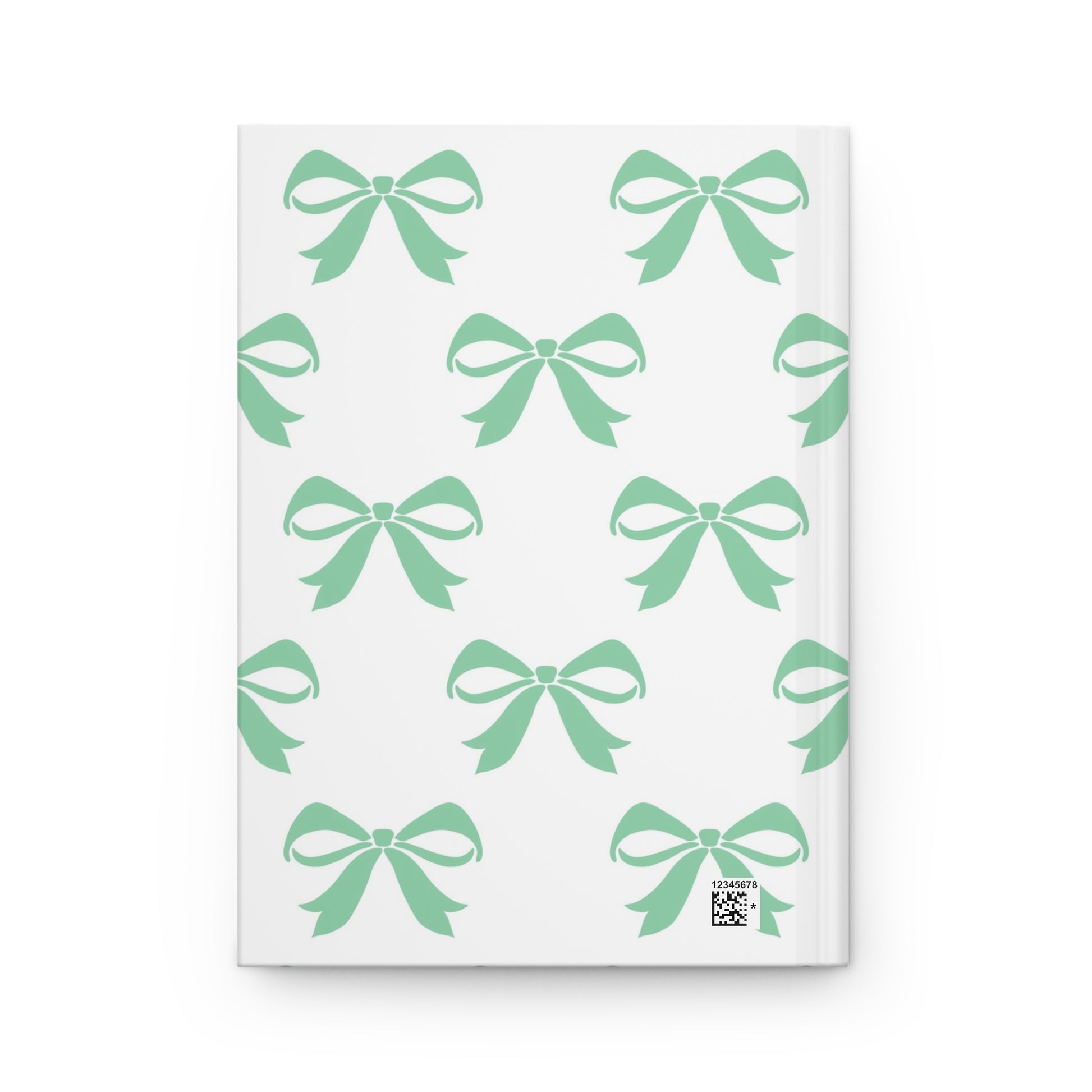 This hardcover journal features a stylish matte design with a cute bow in green. With ample space for writing and durable construction, it's perfect for daily journaling or note-taking. Its muted color tone adds a touch of elegance. Make your everyday journaling more personal, private, and stylish with this matte hardcover journal.