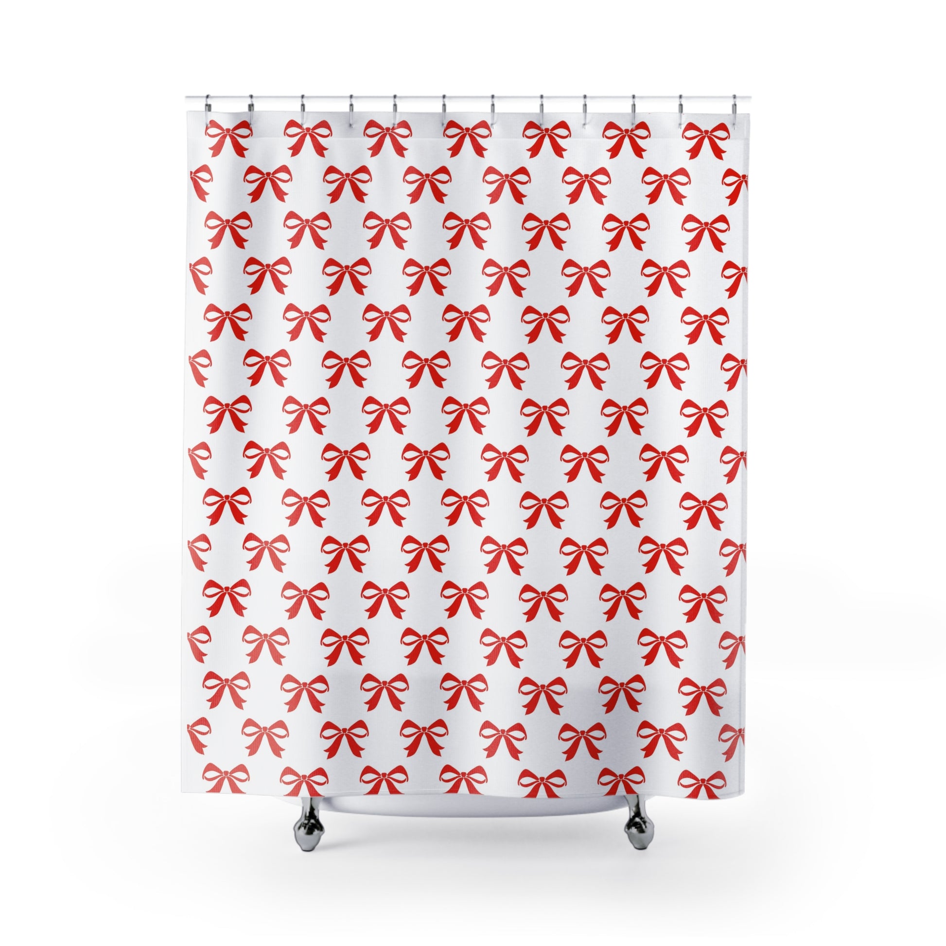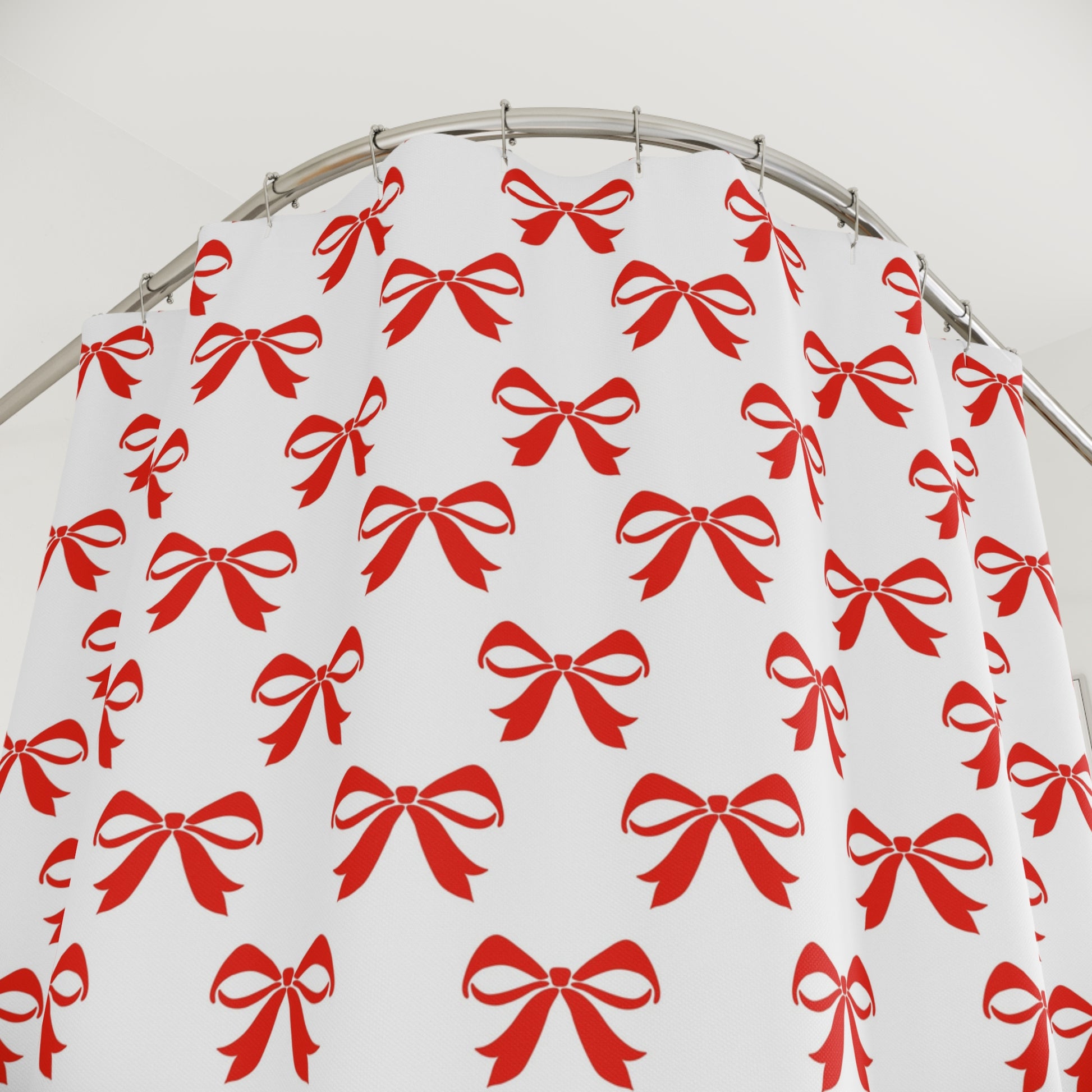 Add a pop of color and fun to your bathroom with our Shower Curtains Girlie Bow Red. Made with high-quality materials, this shower curtain is both durable and stylish. With its playful bow design, it's perfect for adding a touch of personality to any bathroom. Transform your shower into a stylish oasis with this must-have accessory.